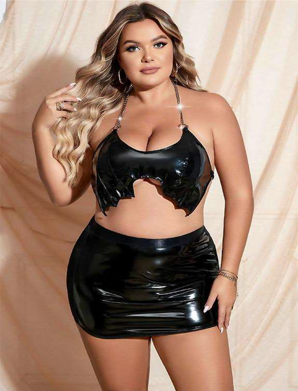 VOUX Siyah Fantazi Büyük Beden Deri Kostüm